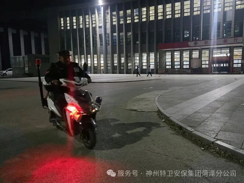 当夜幕笼罩校园,喧嚣渐归平静,有这样一群人,他们身着制服、目光如炬,用脚步丈量责任,用坚守诠释担当——他们是神州特卫驻鄄城县第一中学保安中队,每个深夜,他们都会编织起一张无形的安全网。